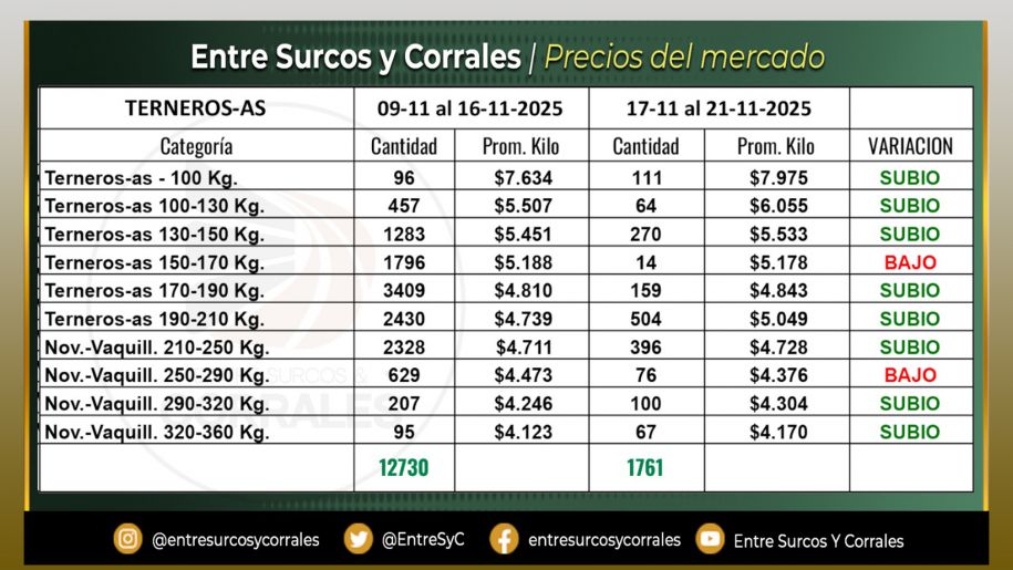 Precios del Mercado al 21 de Noviembre - Terneros-as