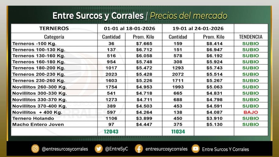 Precios del Mercado al 24 de Enero - Terneros