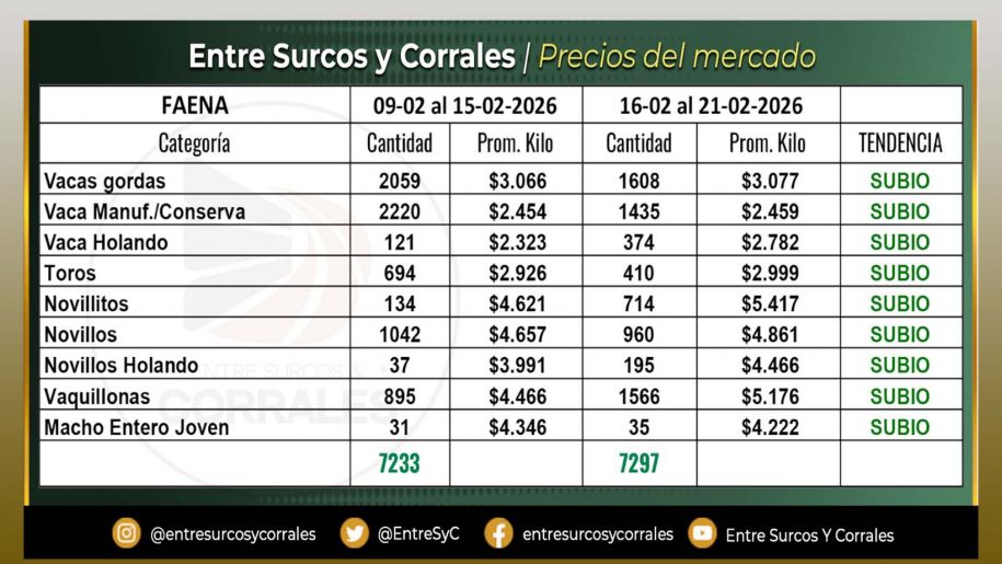 Precios del Mercado al 21 de Febrero - Faena