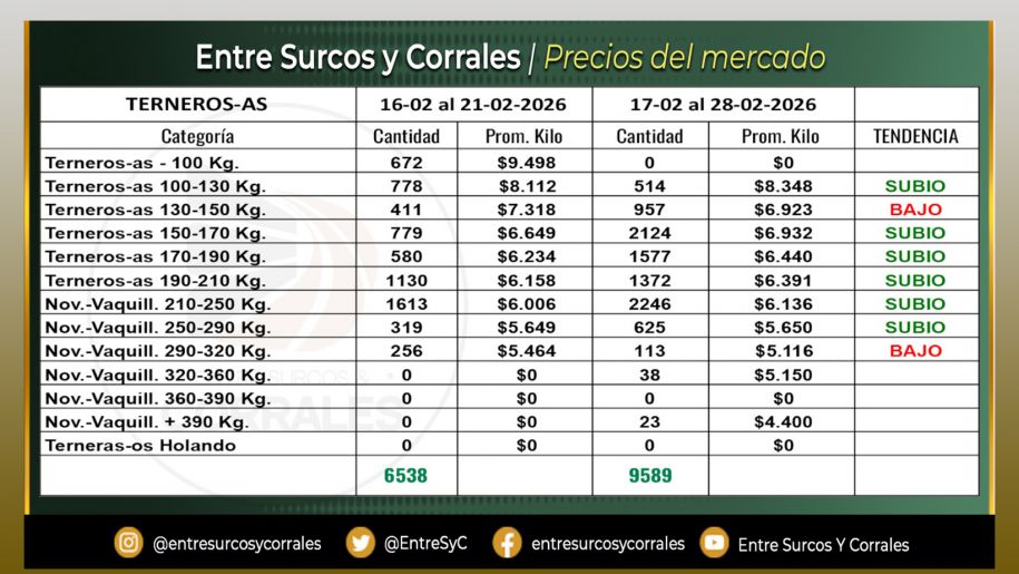Precios del Mercado al 28 de Febrero - Terneros-as