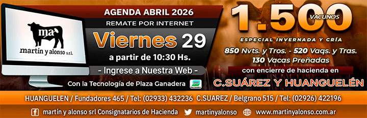 | Novillitos 260-300 Kg. | 14 | 3.232 | 3.360 | 3.120 | 906.480 | 936.000 | 876.960 |